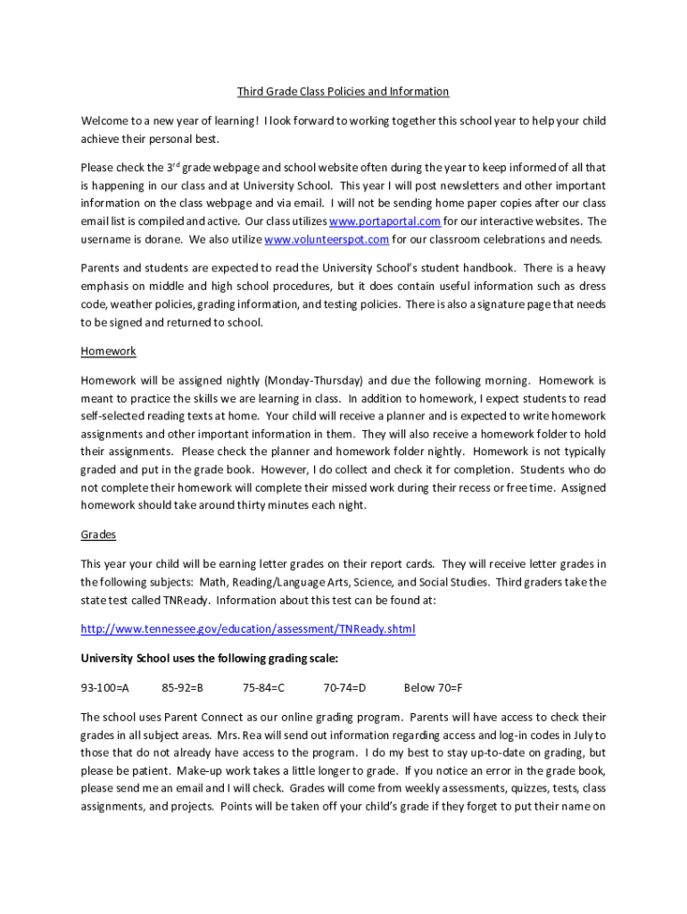 Third Grade Class Policies and Information Welcome to a new year of learning! I look forward to working together this school year to help your child achieve their personal best. Please check the 3rd
