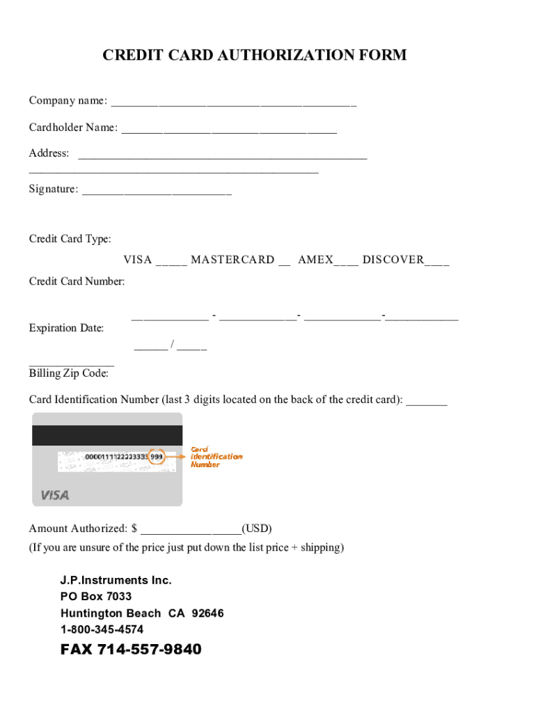 How to fill out pre-purchase credit card authorization