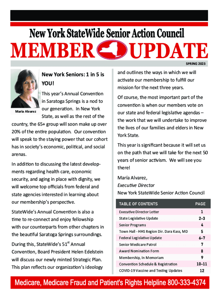 .SPRING 2023New York Seniors: 1 in 5 is YOU! This year's Annual Convention in Saratoga Springs is a nod to our generation. In New York Maria Alvarez State, as well as the rest of the country, the