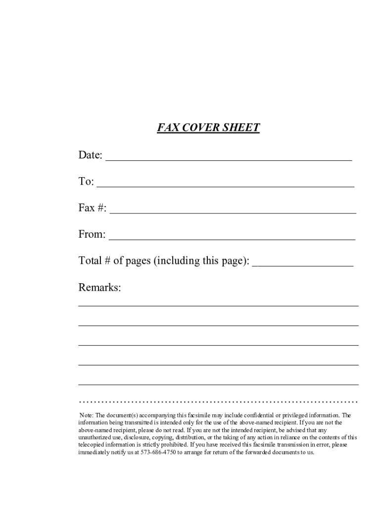 FAX COVER SHEET Date: ___ To: ___ Fax #: ___ From: ___ Total # of pages (including this page): ___ Remarks: ___ ___ ___ ___ ___ Note: The document(s) accompanying this facsimile may include confidential
