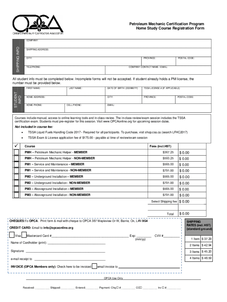 Petroleum Mechanic Certification Program Home Study Course Registration Worshiping INTERCOMPANY:SHIPPING ADDRESS:CITY:PROVINCE:TELEPHONE:POSTAL CODE:COMPANY CONTACT NAME / EMAIL:All student info must