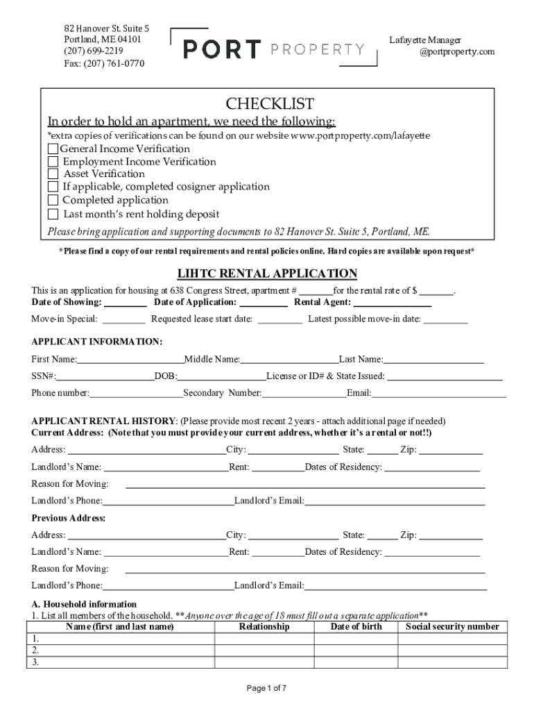82 Hanover St. Suite 5 Portland, ME 04101 (207) 6992219 Fax: (207) 7610770Jordan Mason Lafayette Manager jmason@portproperty.comCHECKLISTIn order to hold an apartment, we need the following:*extra