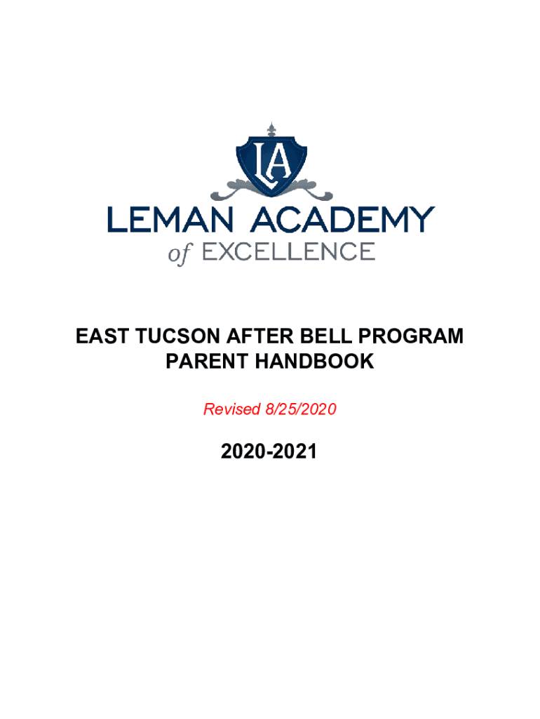 EAST TUCSON AFTER BELL PROGRAM PARENT HANDBOOK Revised 8/25/202020202021 The After Bell program is established as a child care alternative for families whose children attend our school. The program