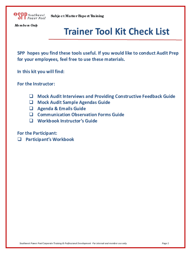 Members OnlyTrainerToolKitCheckListSPPhopesyoufindthesetoolsuseful. IfyouwouldliketoconductAuditPrep