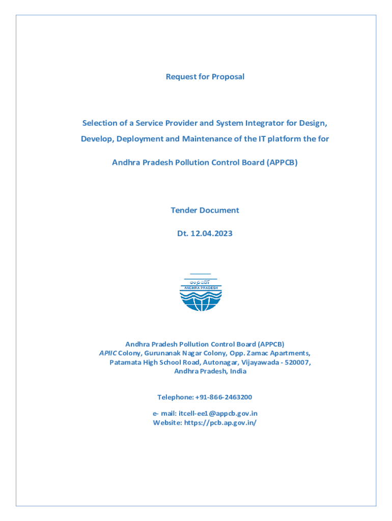 Request for Proposal Selection of a Service Provider and System Integrator for Design, Develop, Deployment and Maintenance of the IT platform the for Andhra Pradesh Pollution Control Board (AP PCB)Tender