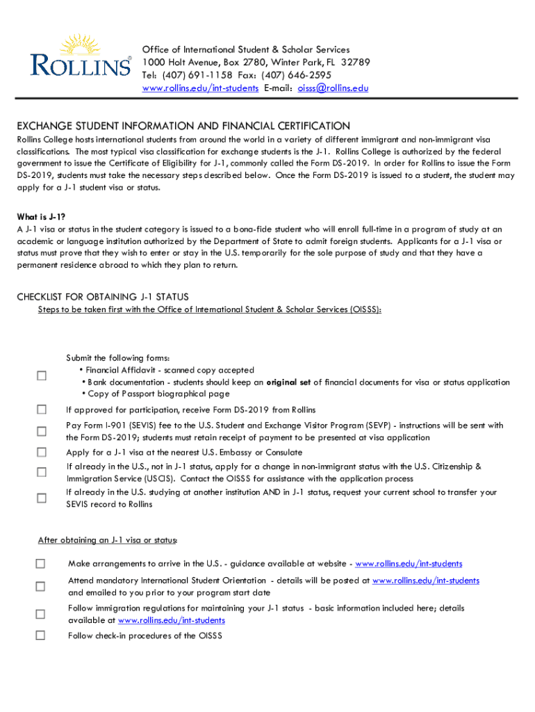 Office of International Student & Scholar Services 1000 Holt Avenue, Box 2780, Winter Park, FL 32789 Tel: (407) 6911158 Fax: (407) 6462595 www.rollins.edu/intstudents Email: oisss@rollins.eduEXCHANGE