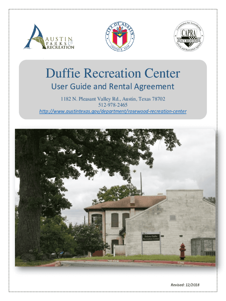 Toughie Recreation Center User Guide and Rental Agreement 1182 N. Pleasant Valley Rd., Austin, Texas 78702 5129782465 http://www.austintexas.gov/department/rosewoodrecreationcenterRevised: 12/2018Delores
