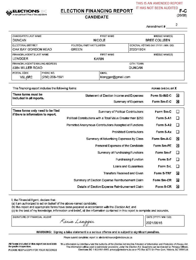 ELECTION FINANCING REPORT FC