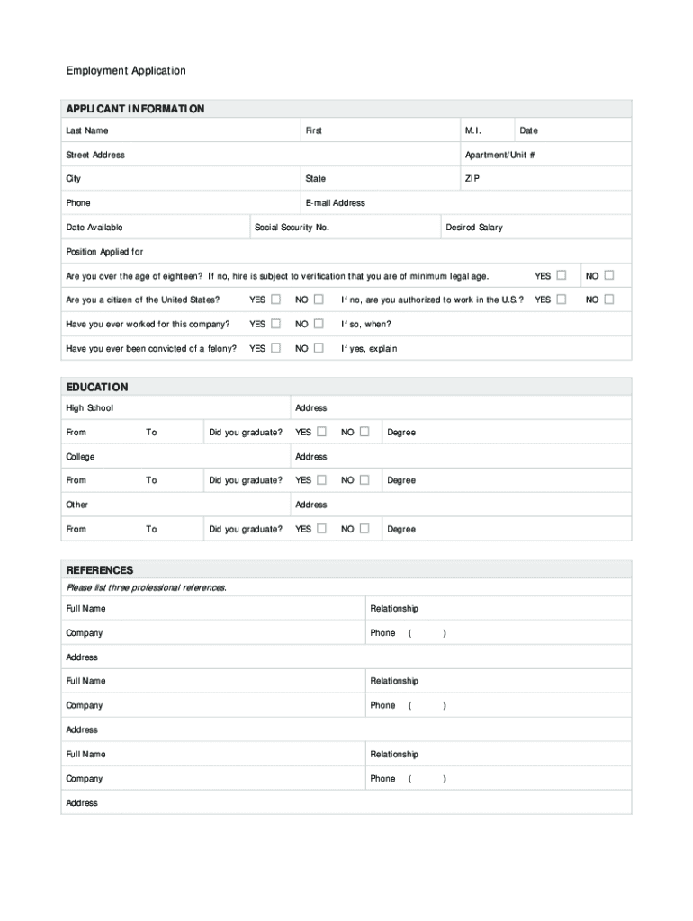 Last NameFirstM. I. Street AddressDateApartment/Unit #CityStatePhoneEmail Addressable AvailableZIPSocial Security No. Desired SalaryPosition Applied for