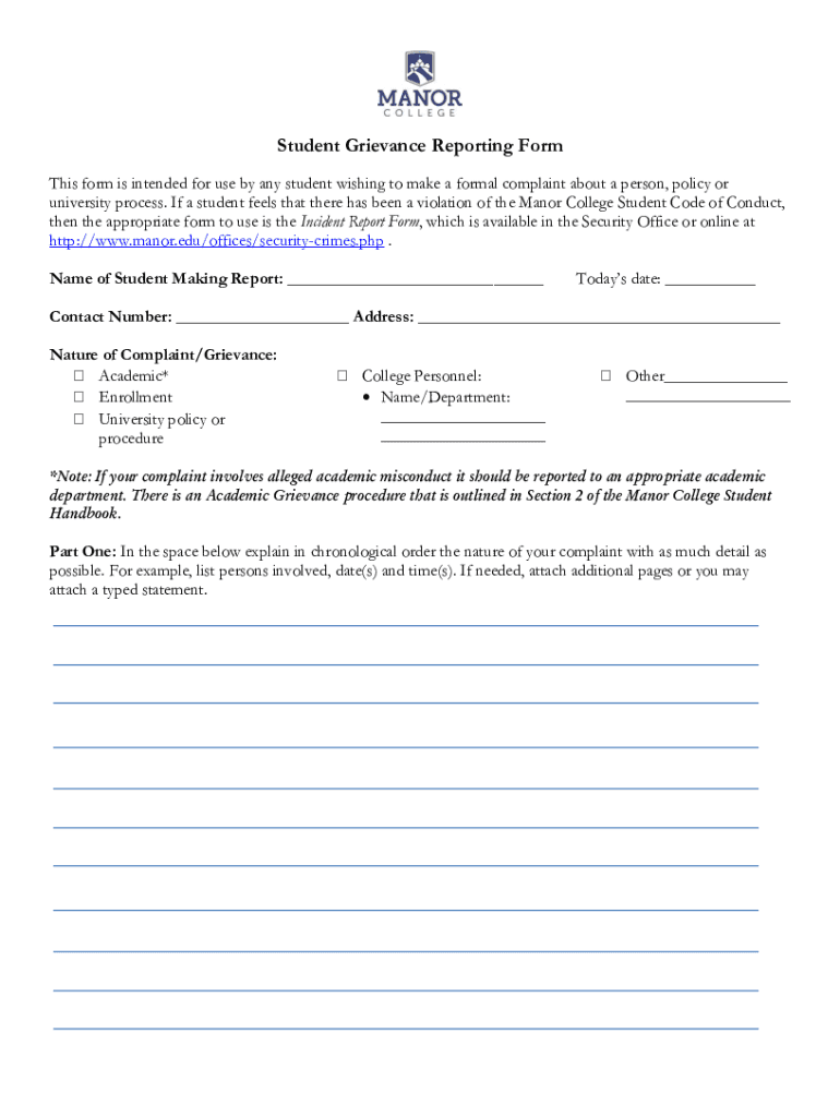 Get the free Student Grievance Reporting Form