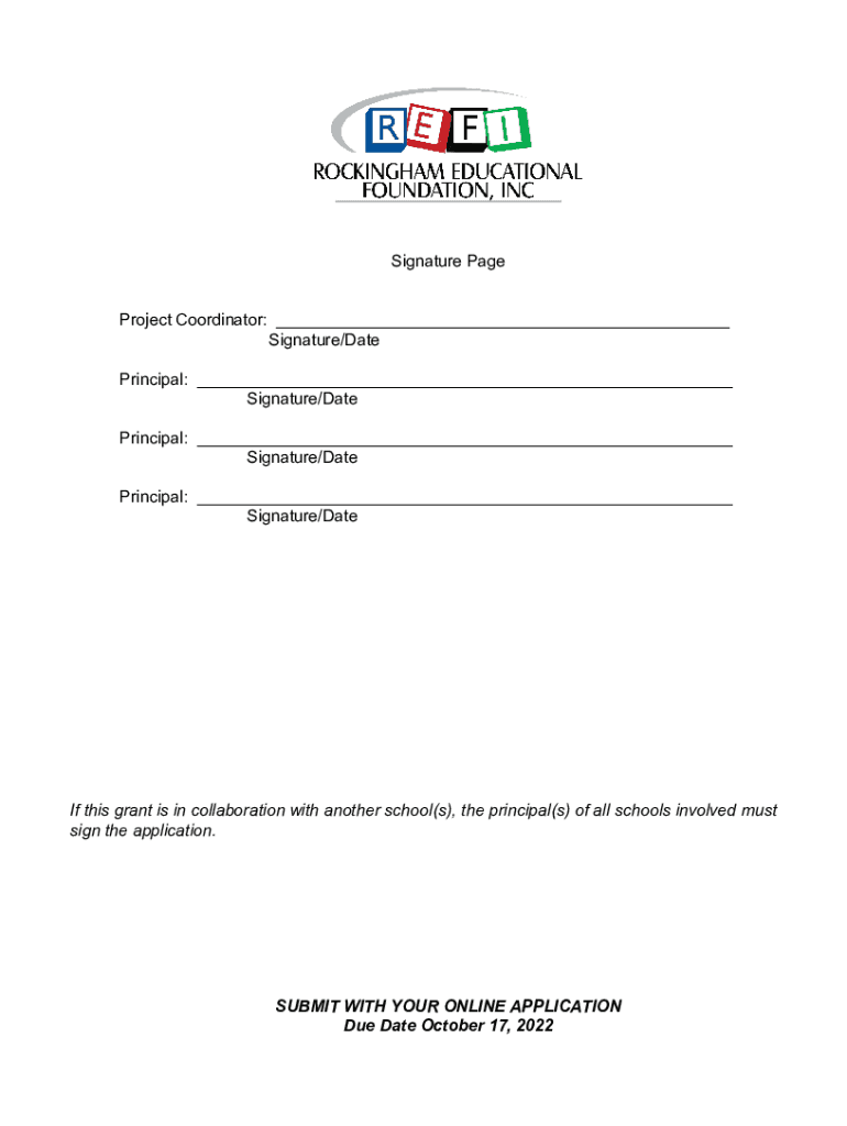 Signature Page Project Coordinator: ___ Signature/Date Principal: ___ Signature/Date Principal: ___ Signature/Date Principal: ___ Signature/Date this grant is in collaboration with another school(s),