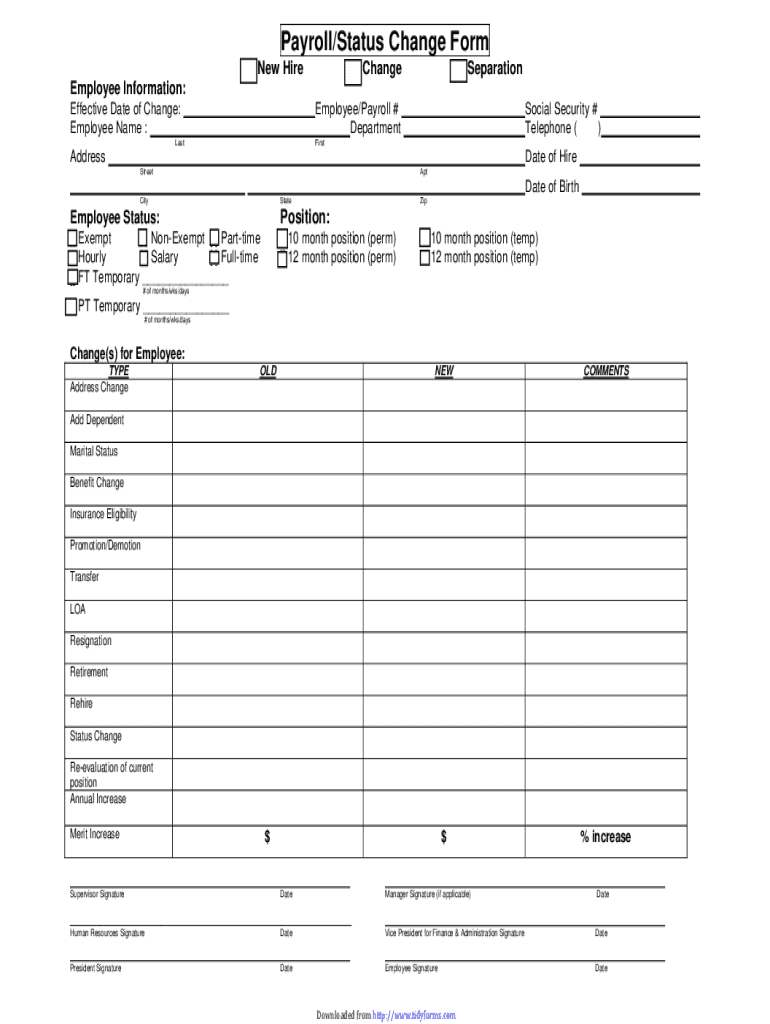 Get the free PAYROLL STATUS CHANGE FORM