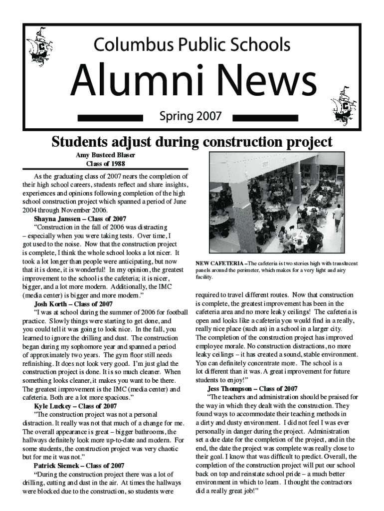 Columbus Public SchoolsAlumni News Spring 2007Students adjust during construction project Amy Busted Laser Class of 1988As the graduating class of 2007 nears the completion of their high school careers,