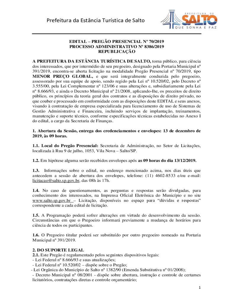 Prefecture the Estonia Justice de SaltoEDITAL PRESO PRESENCE N 70/2019