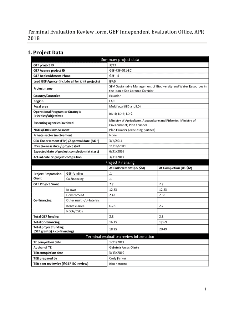 Terminal Evaluation Review form, GEF Independent Evaluation Office, APR 2018 1. Project DataSummary project data GEF project ID3717GEF Agency project IDGEFFSP021ECGEF Replenishment Phase GEF 4Lead