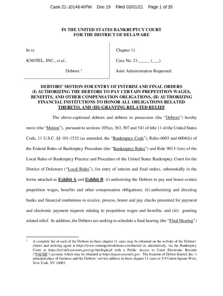Case 2110146MFWDoc 19Filed 02/01/21Page 1 of 35IN THE UNITED STATES BANKRUPTCY COURT