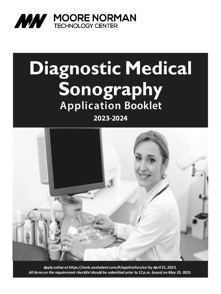 Diagnostic Medical Sonography Application Booklet 20232024Apply online at https://mntc.axstudent.com/#/application/ozr by April 21, 2023. All items on the requirement checklist should be submitted