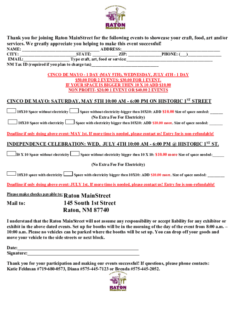 Thank you for joining Eaton Mainstream for the following events to showcase your craft, food, art and/or services. We greatly appreciate you helping to make this event successful! NAME: ___ ADDRESS:___