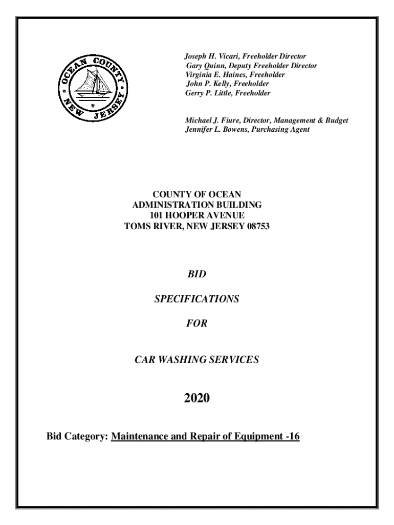 Get the free Bids Specifications for Car Washing Services