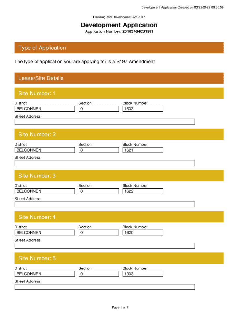 Planning and Development Act 2007Development Application Number: 201834846S197IType of Application