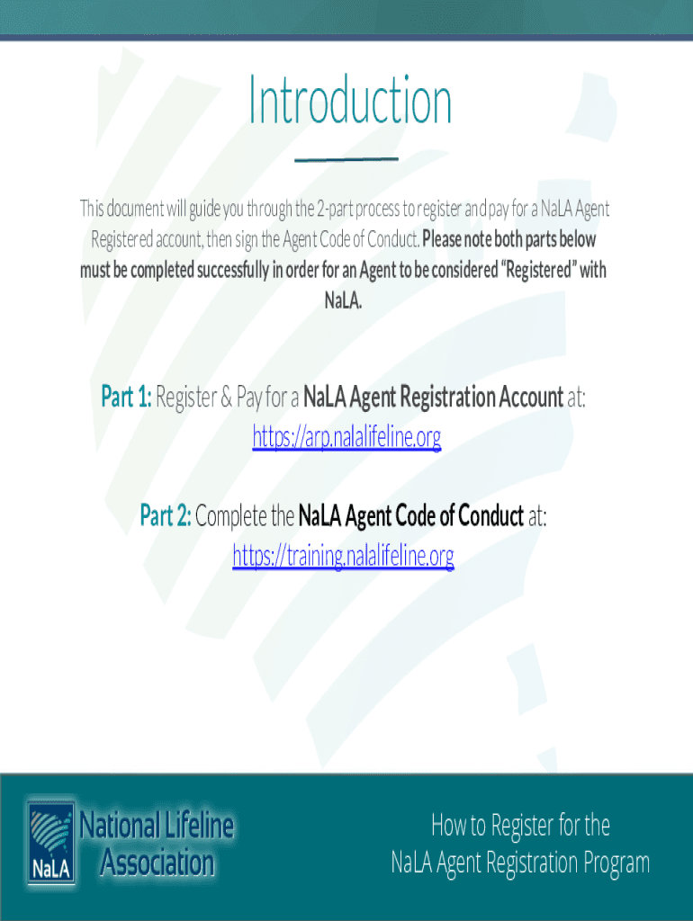 Introduction This document will guide you through the 2part process to register and pay for a NASA Agent Registered account, then sign the Agent Code of Conduct. Please note both parts below must