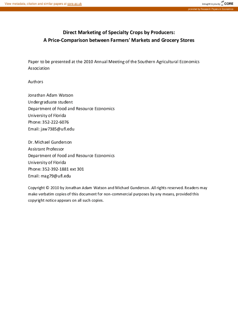 View metadata, citation and similar papers at core.ac.brought to you byCOREprovided by Research Papers in EconomicsDirect Marketing of Specialty Crops by Producers: A PriceComparison between Farmers\'