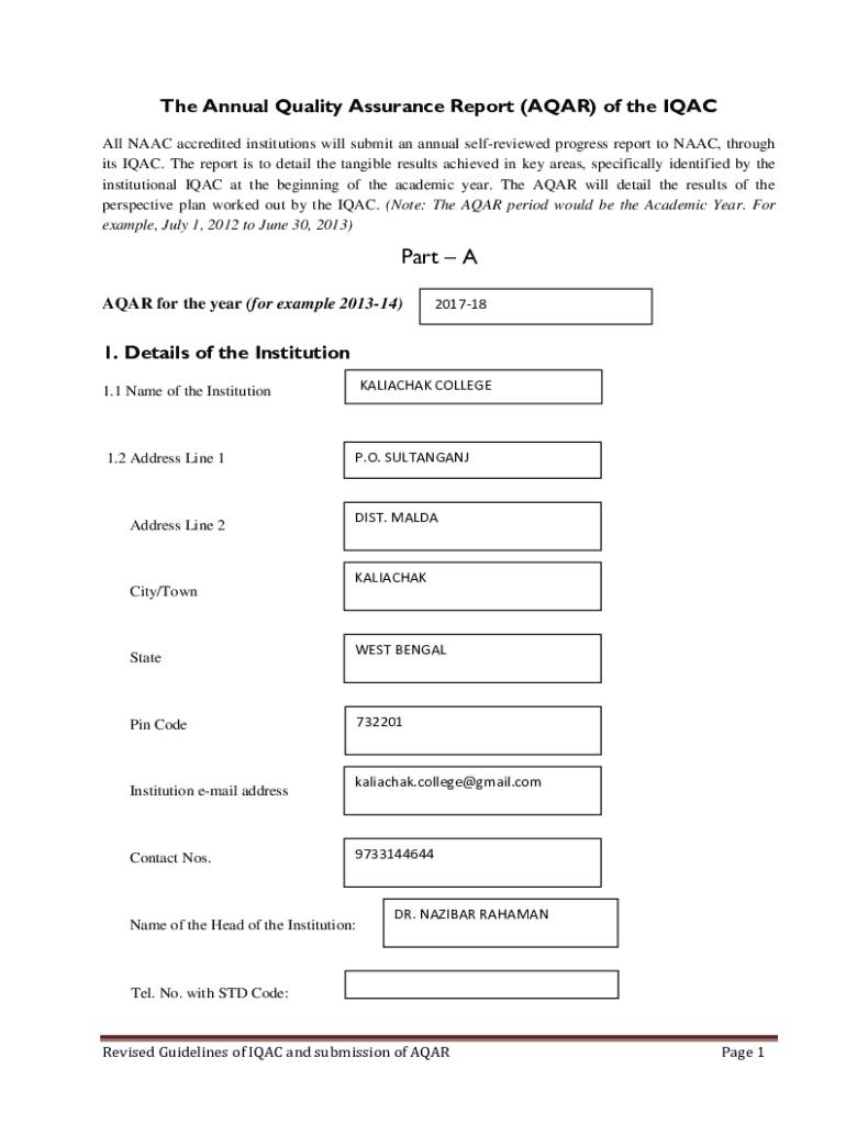 Get the free Annual Quality Assurance Report AQAR of the IQAC ...
