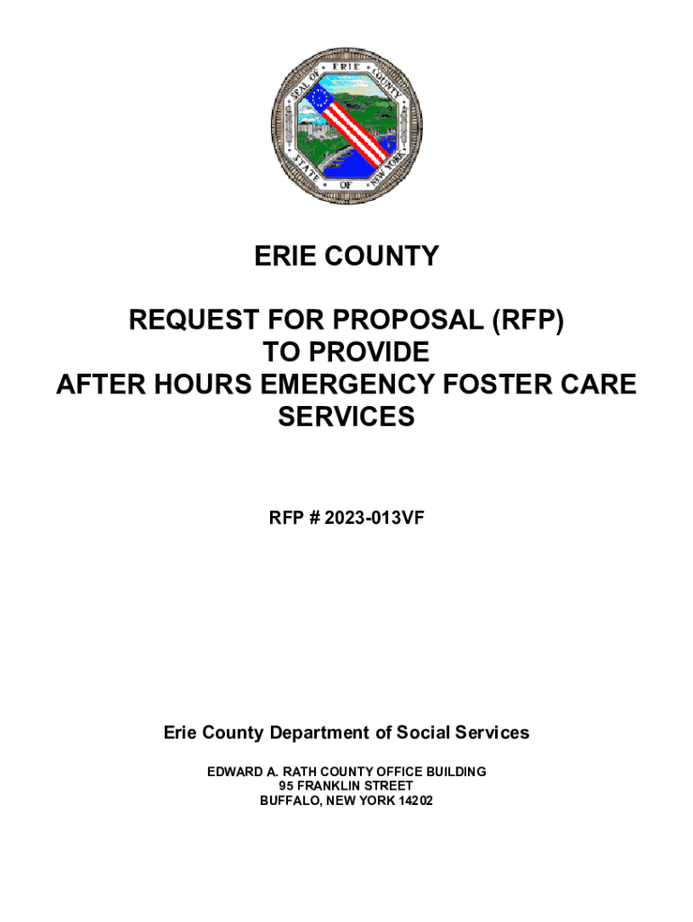 ERIE COUNTY REQUEST FOR PROPOSAL (RFP) TO PROVIDE AFTER HOURS EMERGENCY FOSTER CARE SERVICES RFP # 2023013VFErie County Department of Social Services EDWARD A. RATE COUNTY OFFICE BUILDING 95 FRANKLIN