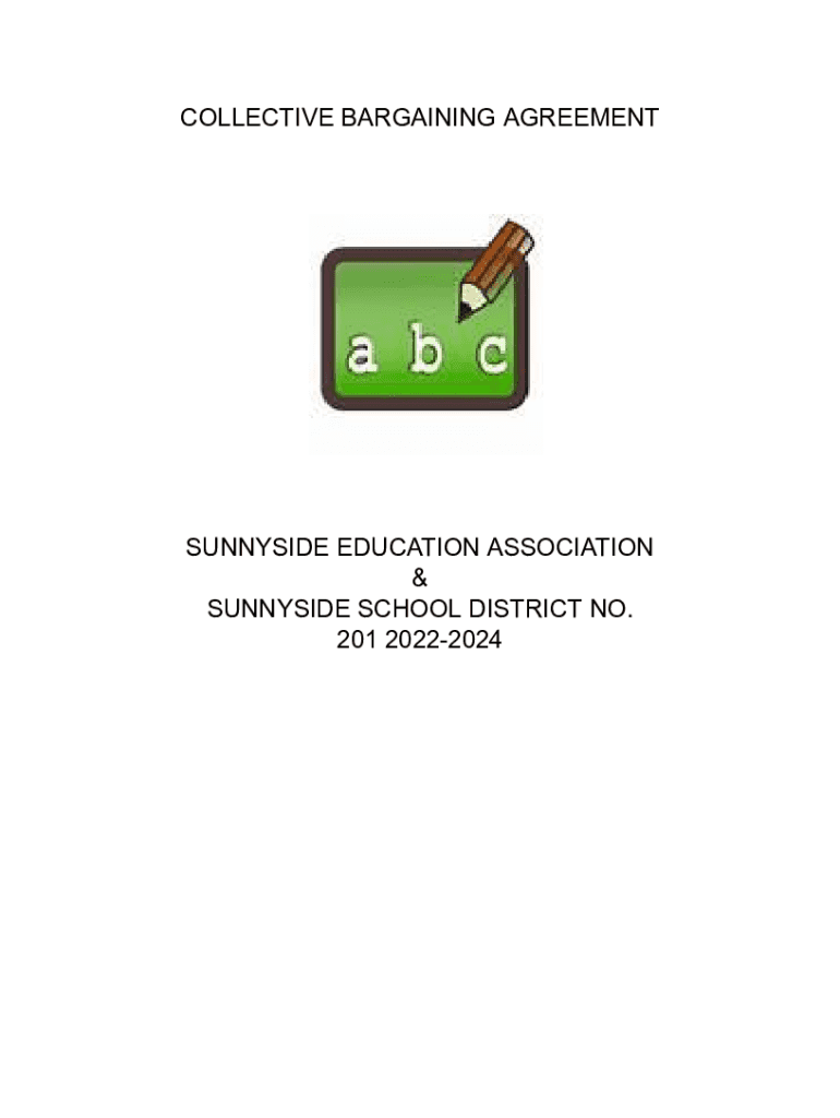 COLLECTIVE BARGAINING AGREEMENTSUNNYSIDE EDUCATION ASSOCIATION & SUNNYSIDE SCHOOL DISTRICT NO. 201 20222024TABLE OF CONTENTSPREAMBLE.............................................................................................1