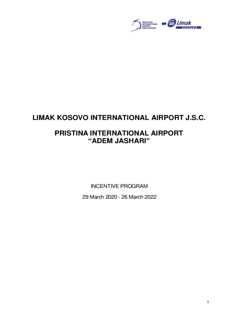 LIMA KOSOVO INTERNATIONAL AIRPORT J.S.C. Priština INTERNATIONAL AIRPORT ADAM JASHARIINCENTIVE PROGRAM 29 March 2020 26 March 20221Table of Contents ARTICLE 1: OBJECTIVE ........................................................................................