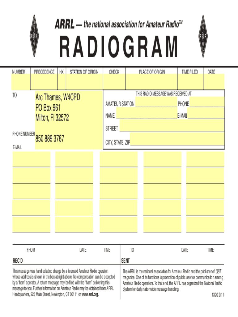 ARL the national association for Amateur RadioTMRADIOGRAMNUMBERPRECEDENCETOHXSTATION OF Original Thames, W4CPD