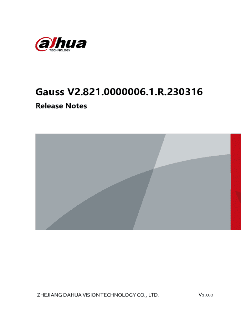 Release NotesZHEJIANG DATA VISION TECHNOLOGY CO., LTD. V1.0.0ZHEJIANG DATA VISION TECHNOLOGY CO., LTD. V1.0.0Release Nonlegal Information