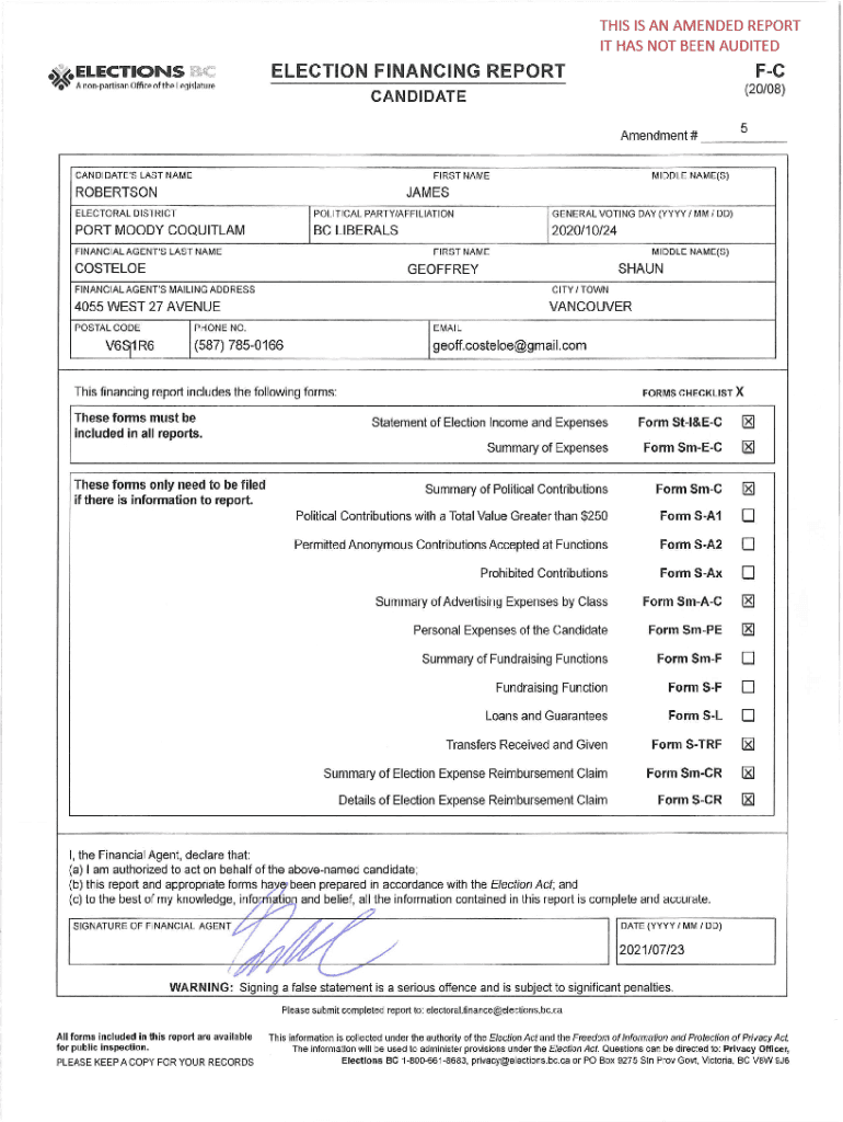 Amendment# _ _ __ __CANDIDATE\'S LAST NAMEJAMESIELECTORAL DISTRICTGENERAL VOTING DAY (YYY /MM/ DD)BC
