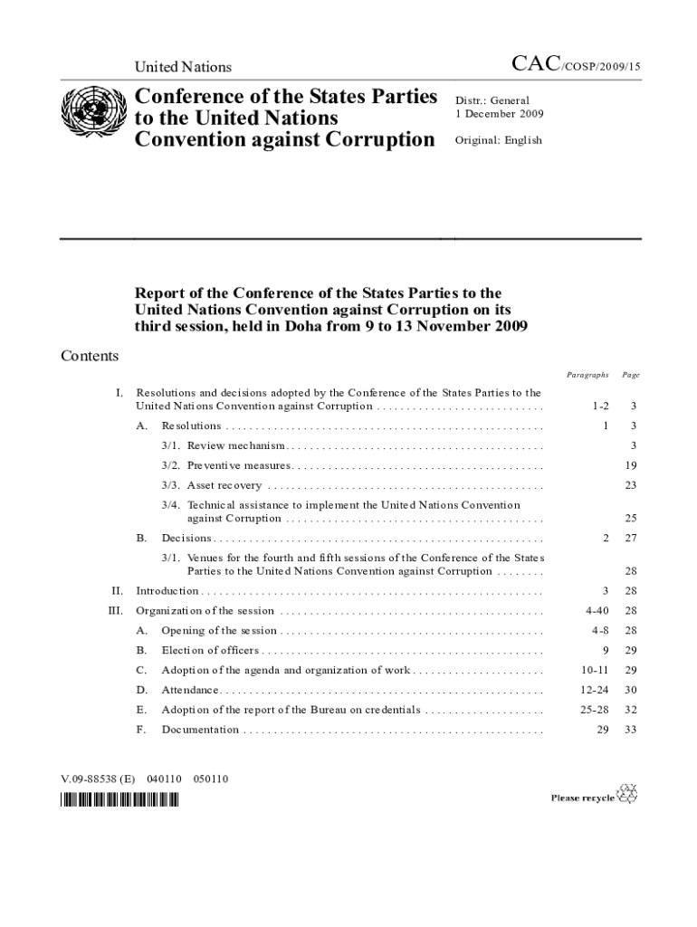 Convention against Corruption CAC/COST/2009/15