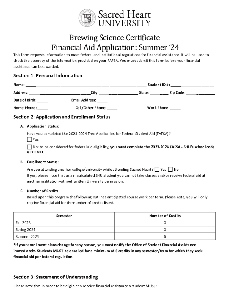 Brewing Science Certificate Financial Aid Application: Summer 24This form requests information to meet federal and institutional regulations for financial assistance. It will be used to check the