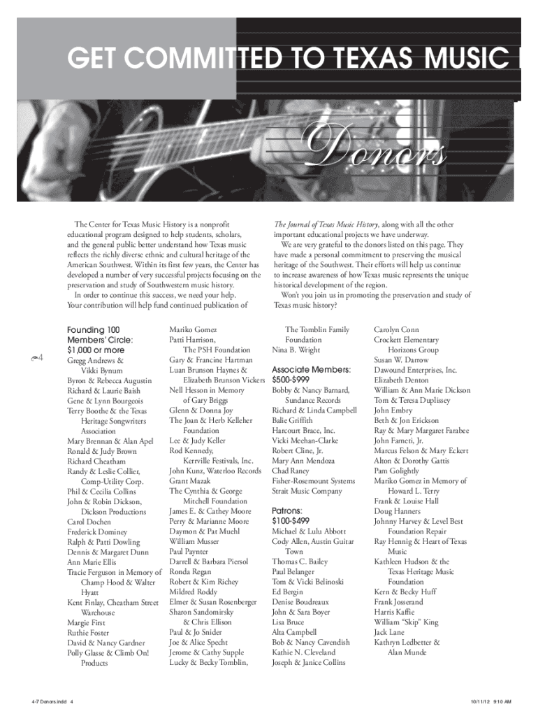 Fill out your journal of texas music online with pdfFiller!