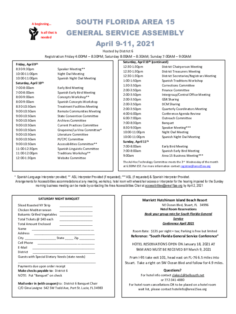 Get the free Area 15 South Florida General Service Assembly