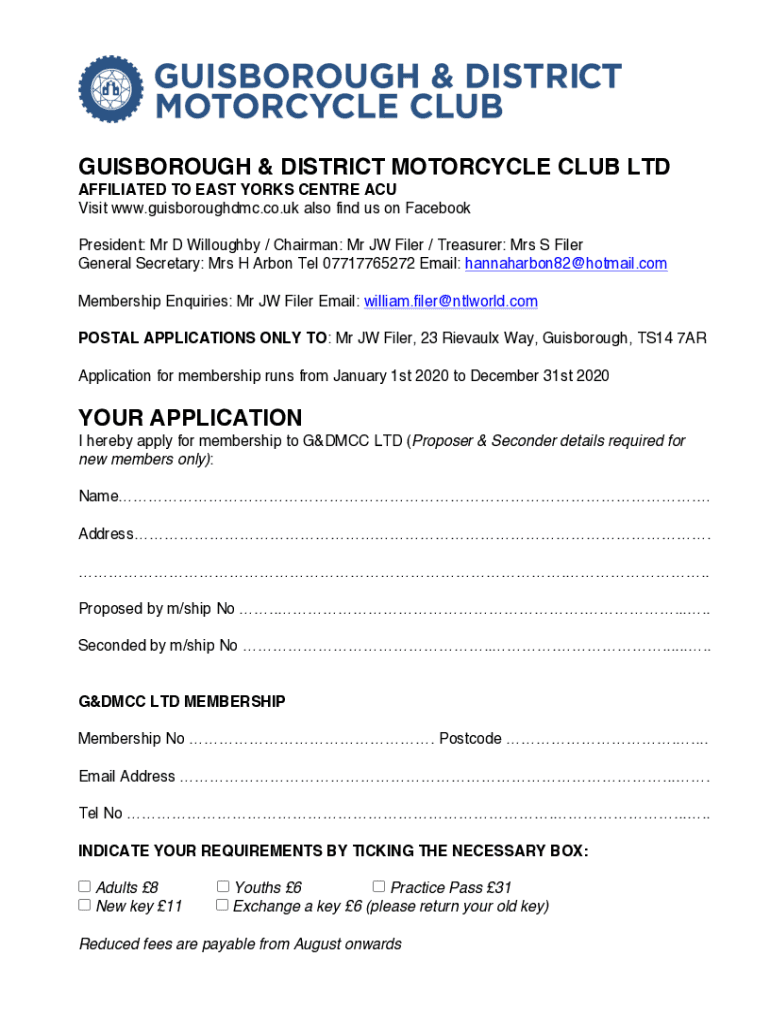 Fill out your guisborough dmc membership form online with pdfFiller!