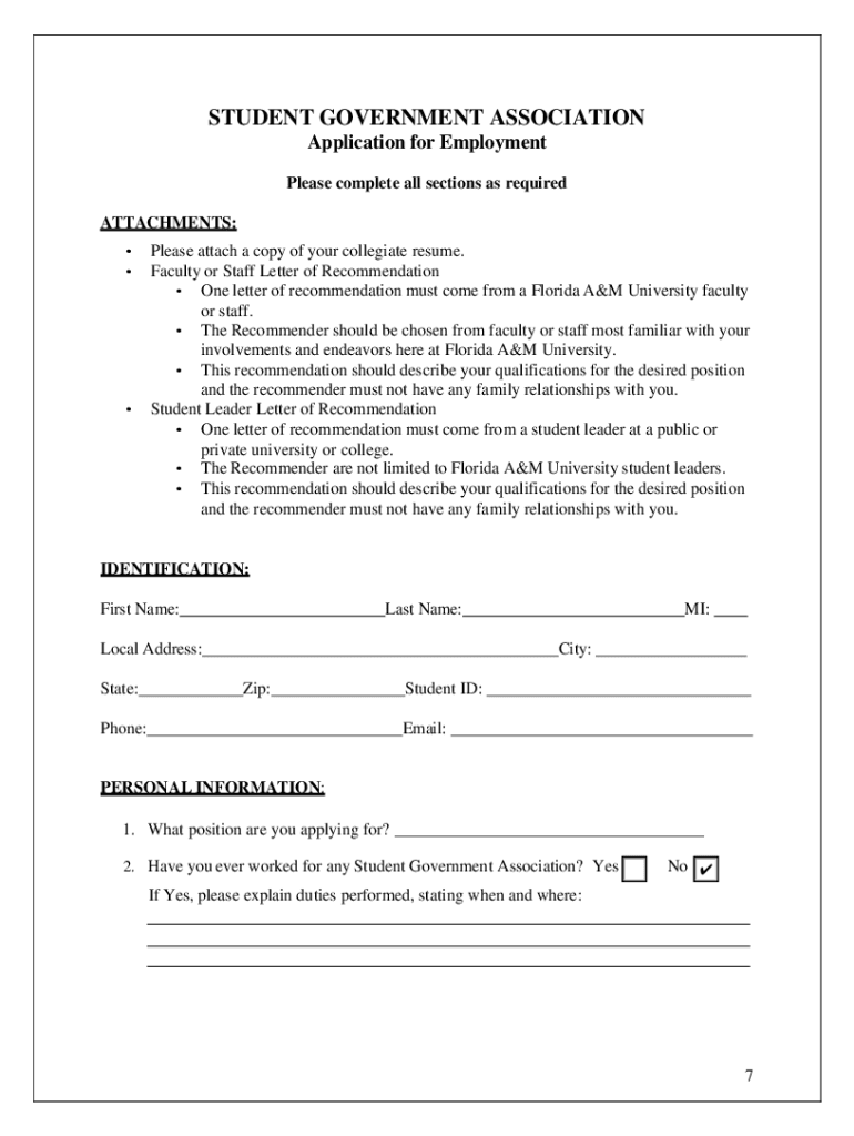 APPLICATION FOR EMPLOYMENT FLORIDA A&M UNIVERSITY Student Government Association Judicial BranchPlease submit application to: ariel2.burks@famu.edu cc: ronnie.mackey@famu.edu Contact Information: