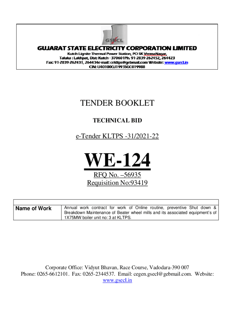 TENDER BOOKLET TECHNICAL Bitdefender KL TPS 31/202122WE124 RFQ No. 56935 Requisition No:93419Name of WorkAnnual work contract for work of Online routine, preventive Shut down & Breakdown Maintenance