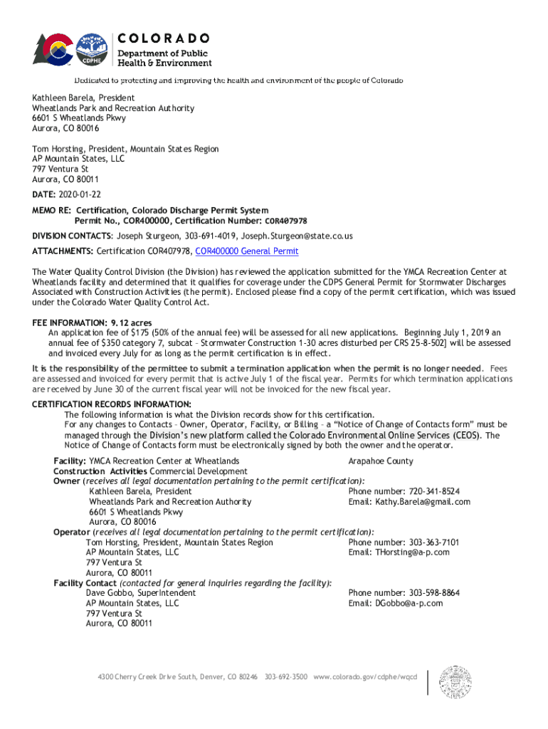 Get the free 20003-cdps-general-permit-ymca-complete.pdf