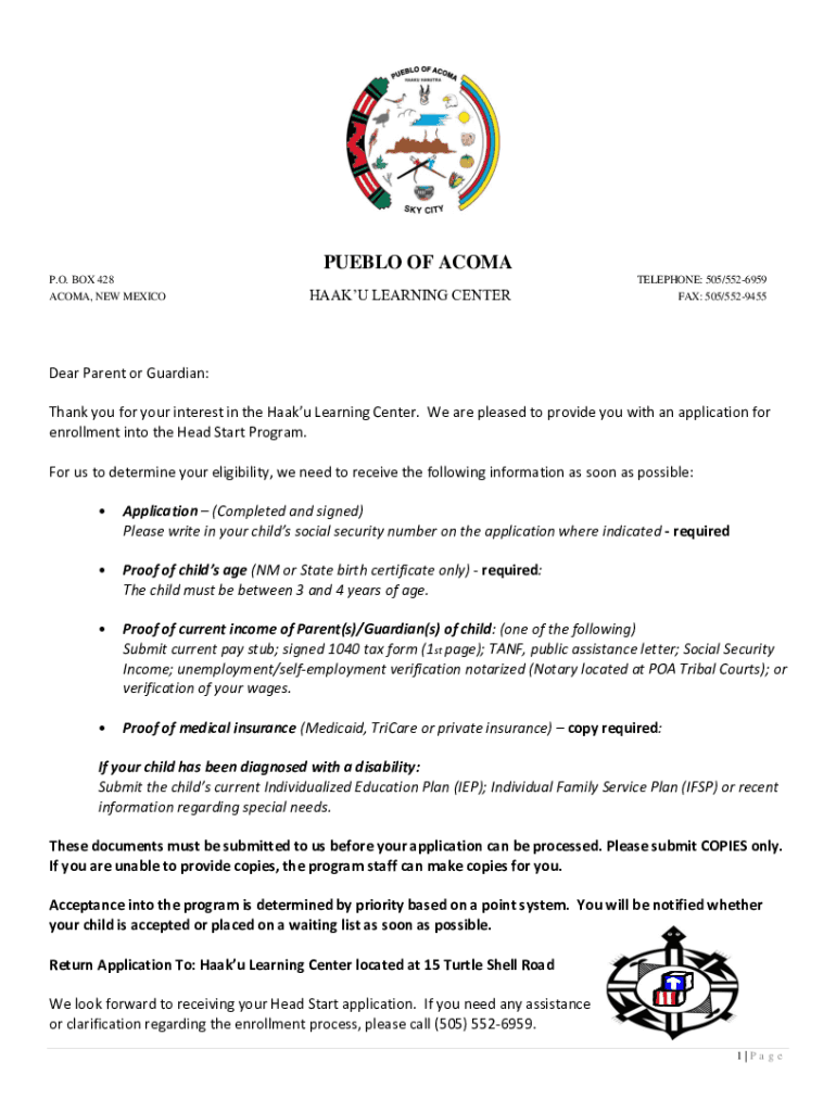 Get the free Haak'u Learning Center (AIAN)Acoma NM Head Start Program