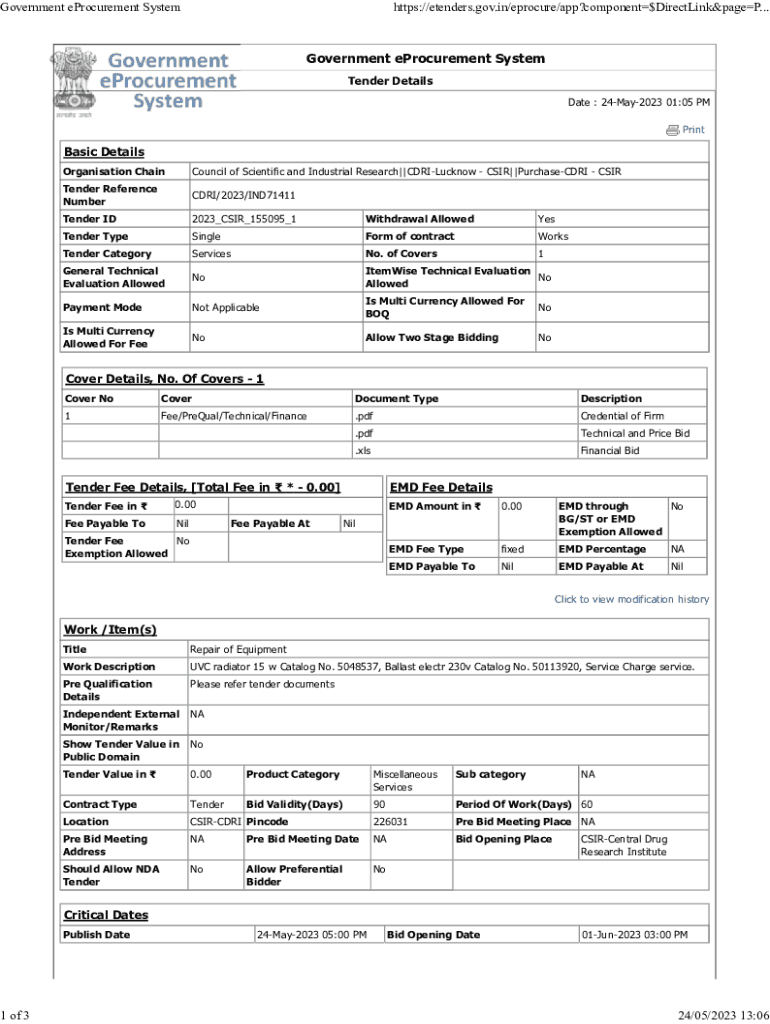 Get the free Technical and Price Bid - cdri res
