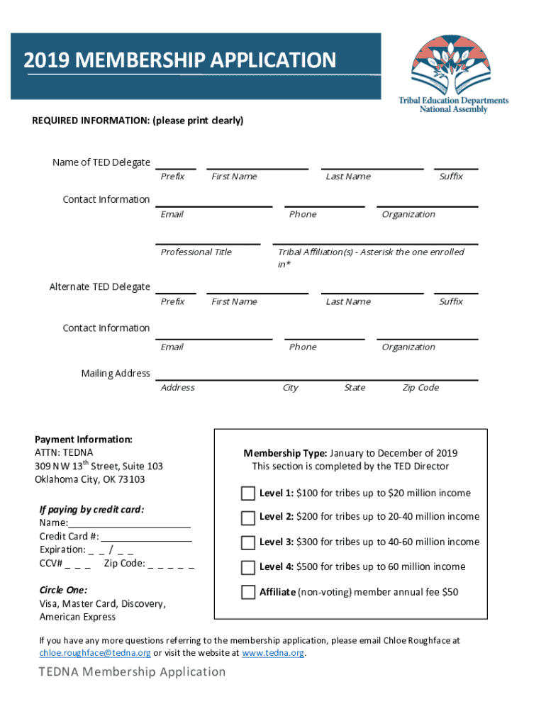 2019 MEMBERSHIP APPLICATIONREQUIRED INFORMATION: (please print clearly)Name of TED Delegate