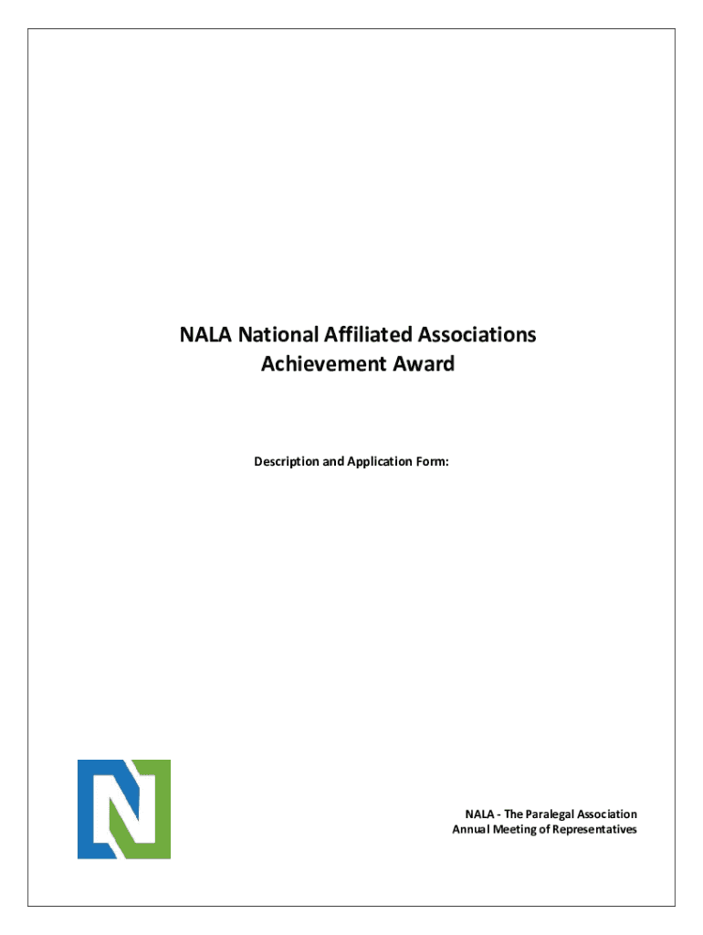 NASA National Affiliated Associations Achievement AwardDescription and Application Form:NASA The Paralegal Association Annual Meeting of RepresentativesNALA AFFILIATED ASSOCIATIONS NATIONAL ACHIEVEMENT