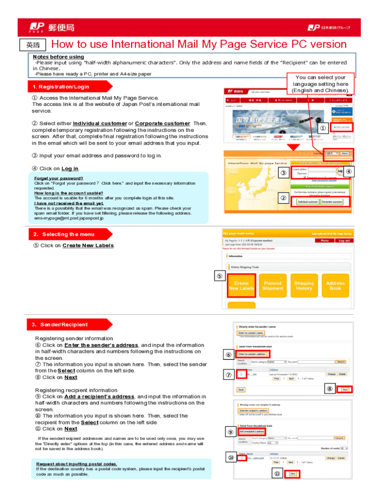 How to use International Mail My Page Service PC version Please have ready a PC, printer and A4size paper.1. Registration/Login Access the International Mail My Page Service. The access link is at