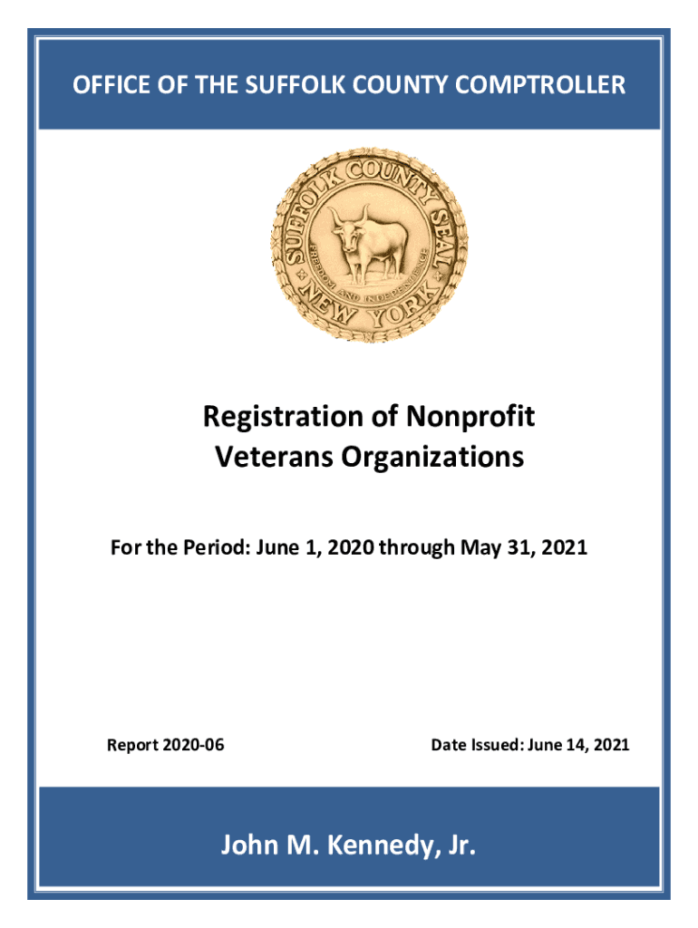 ___OFFICE OF THE SUFFOLK COUNTY COMPTROLLERRegistration of Nonprofit Veterans Organizations For the Period: June 1, 2020, through May 31, 2021Report 202006Date Issued: June 14, 2021John M. Kennedy,