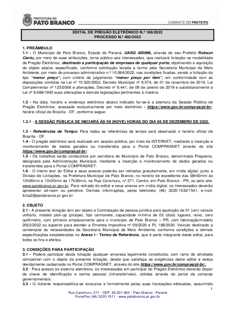 1.1 O Municipal de Pato Branch, Est ado do Pagan, USG 450996, trans do SEU Predator Robson