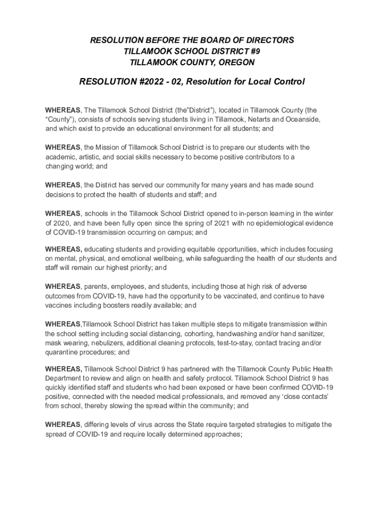 BILLHOOK COUNTY, OREGONRESOLUTION #2022 02, Resolution for Local Control