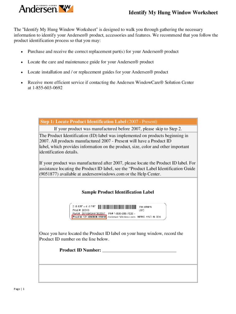 Identify My Hung Window Worksheet The \” Identify My Hung Window Worksheet\” is designed to walk you through gathering the necessary information to identify your Andersen product, accessories